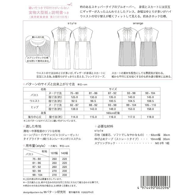 商品名:サン・プランニング 型紙 パターン スキッパーギャザードレス M209 white