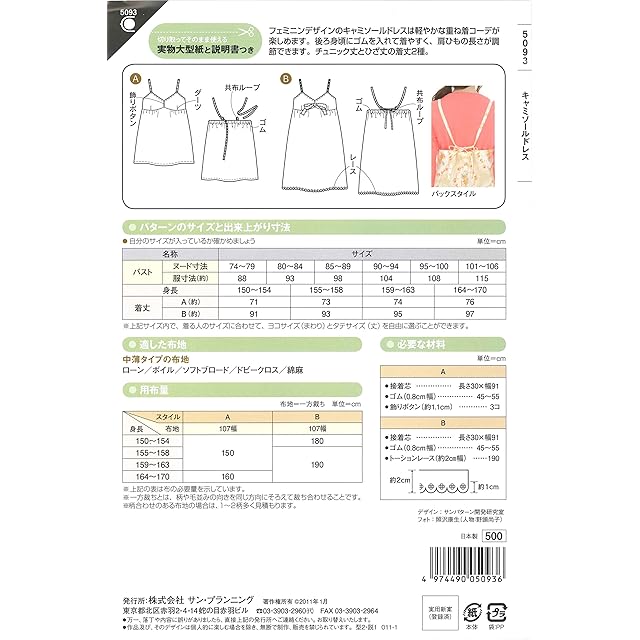 サン・プランニング 型紙・パターン フィットパターンサン キャミソールドレス 5093