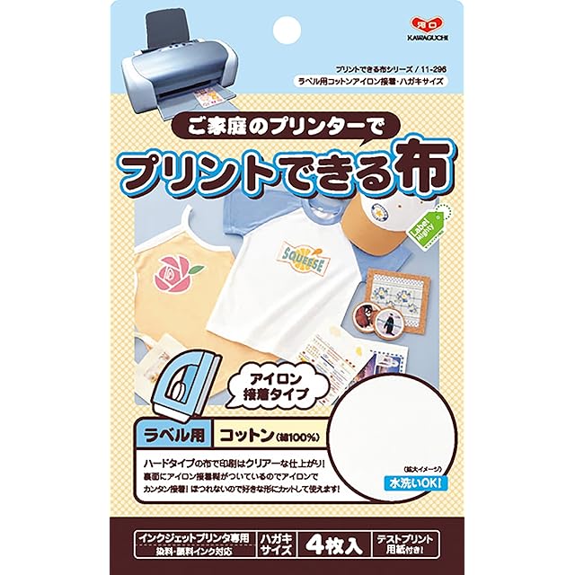 KAWAGUCHI プリントできる布 ラベル用 アイロン接着 コットン 4枚 ハガキサイズ 11-296