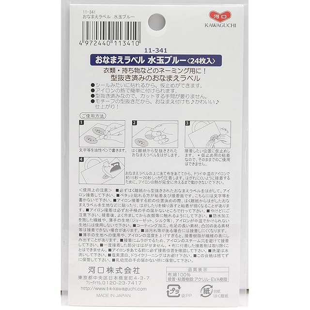 KAWAGUCHI おなまえラベル 型抜き済み 仮粘着加工 アイロン接着 24枚入り 水玉ブルー 11-341