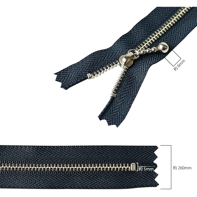 素材:テープ部分:ポリエステル、チェーン部分:真鍮合金、スライダー部分:亜鉛合金