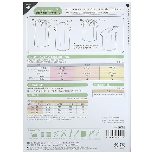 商品名:サン・プランニング 型紙 パターン フィットパターン サン フレンチスキッパーチュニック 6026