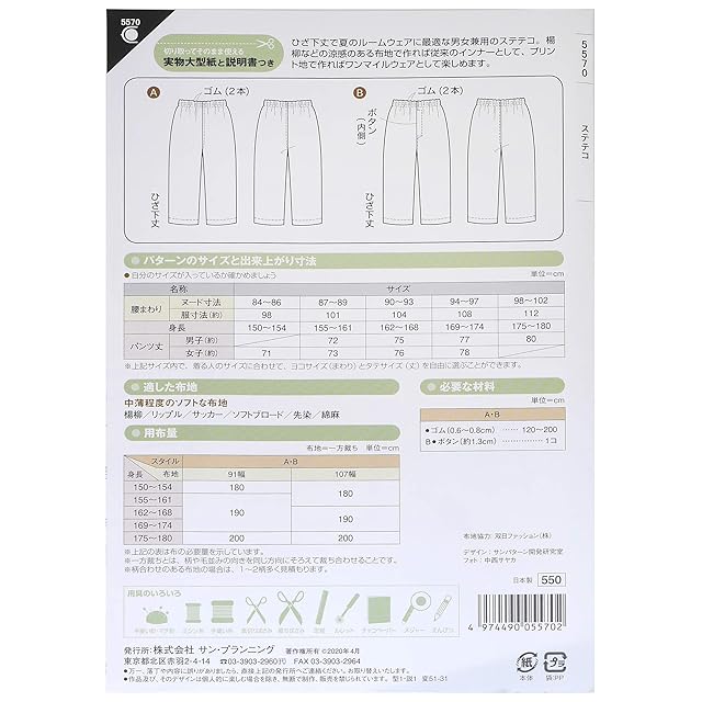商品名:サン・プランニング 型紙・パターン ステテコ 5570