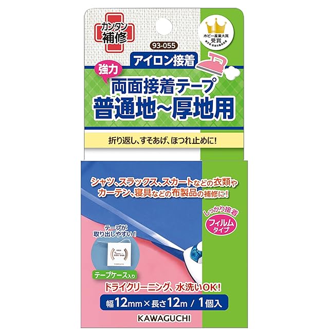 KAWAGUCHI 普通地~厚地用 強力両面接着テープ アイロン接着 幅12mm 長さ12m 93-055