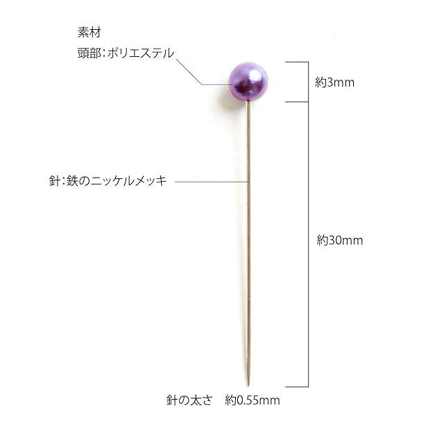 商品名:日本紐釦貿易(Nippon Chuko) 洋裁用パールピン MIXカラー 長さ約30mm 100本 F1-70 手芸用品 針 まち針