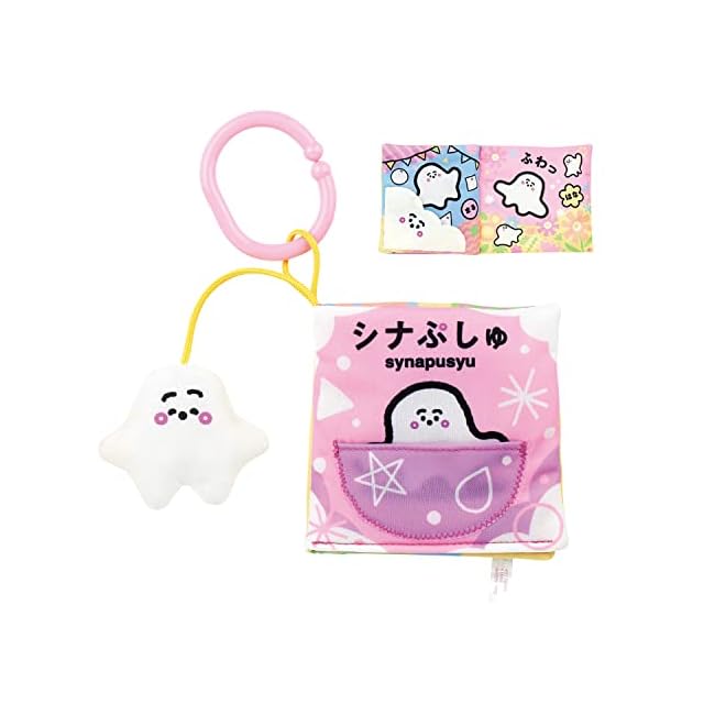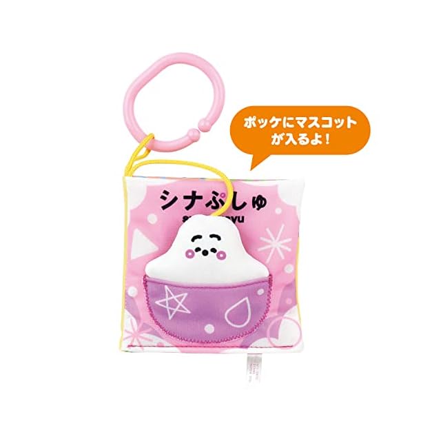 ぷしゅぷしゅの鈴入りマスコットがついた手遊びいっぱいの布絵本です。指先を育むめくり遊びや、マスコットを入れることができるポケット付き♪