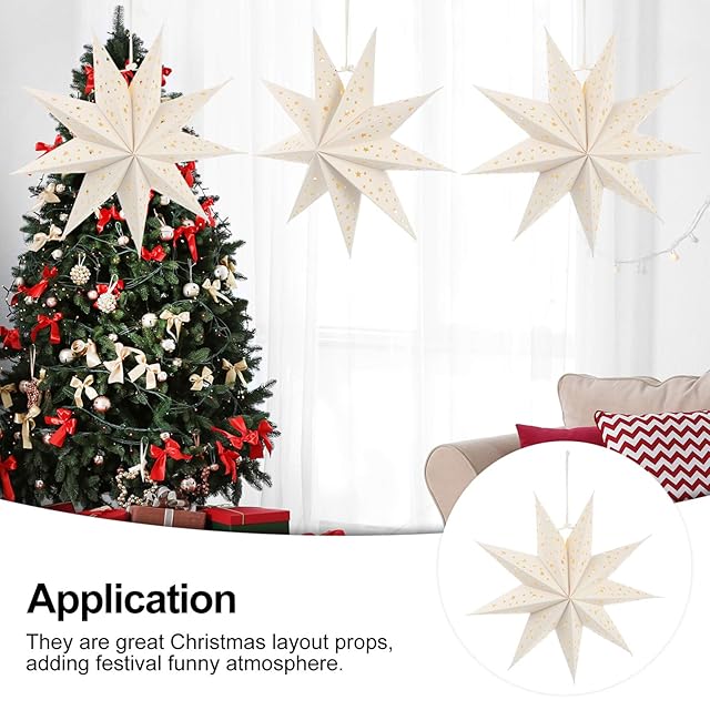 POPETPOP 3Pcsクリスマススターランタンランプシェード9先のとがった中空アウトスターペーパーランタン天井吊り飾り装飾結婚披露宴クリスマスツリー35cm(白)