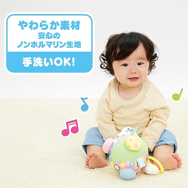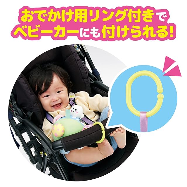 ベビーカーなどにつけることができるおでかけ用リング付き仕様でおでかけ先や移動中、いつでも&どこでも楽しく遊べるアイテムです。