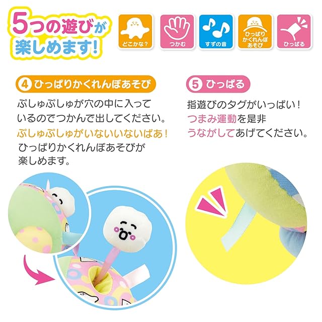 ポコポコの突起がお子様の指先運動にも最適♪シナぷしゅを引き出すことで、ひっぱりかくれんぼ遊びも楽しめる仕様でボリューム感満点!
