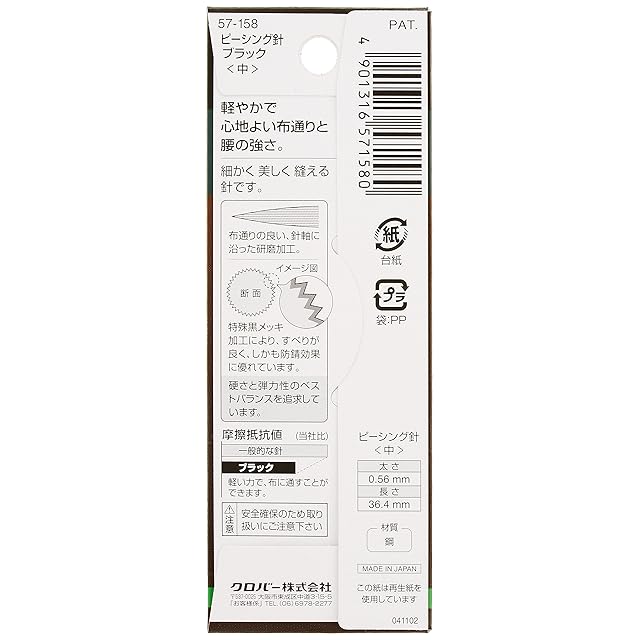 商品名:Clover ピーシング針 ブラック 中 10本入り 57-158
