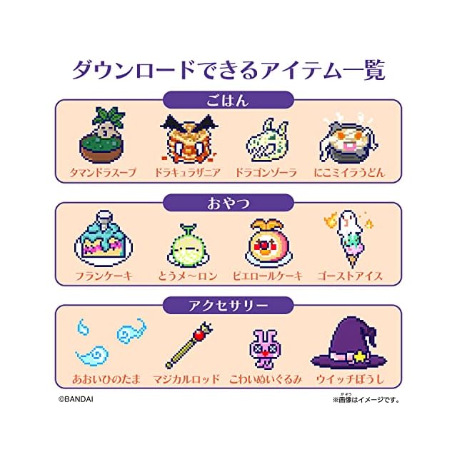 別売りの「Tamagotchi Smart」にメモリを挿入すると、マジカルモチーフの育成キャラクターや、 たまごっちスマートをスタイルチェンジできる様々なアイテムをダウンロードすることができます。