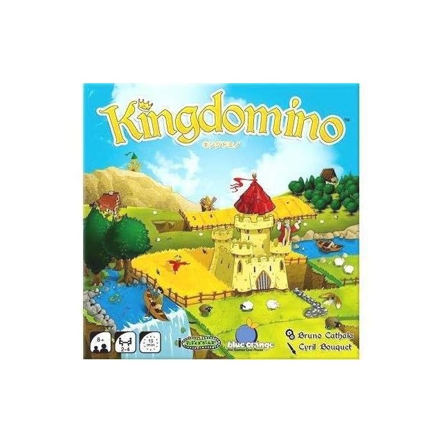 タイトル:キングドミノ 日本語版(Kingdomino) メーカー:テンデイズゲームズ, Blue Orange デザイナー:Bruno Cathala 発売年:2017(原版は2016年) 2017年ドイツ年間ゲーム大賞【大賞】受賞作 プレイ人数:2〜4人 プレイ時間:15分 対象年齢:8歳〜 日本語ルール説明書ついています。 ドミノのような二つのマスで構成された土地タイルを うまく並べて、美しい王国を作り上げましょう! プレイヤーは、並べられたタイルから自分の欲しい タイルを選び、それを自分の前に配置していくことになります。 この時の選択順は、直前に選んだタイルによって決まります。 直前に選んだタイルがより効果的だと思われるタイルであるほど、 次のタイル選択の順番は遅くなります。 効果的なタイルを選ぶことはとても重要ですが、そのあとの タイル選択の順番を踏まえることも、また、重要なのです。 また、パズル的な面白さも、このゲームの魅力です。 自分の王国は、最終的に5×5のマス目で構成されたもの でなければならないため、タイルは配置する際には、 安易に得点だけを考えていてはダメなのです。 うまく配置して、より高い得点を目指しましょう。