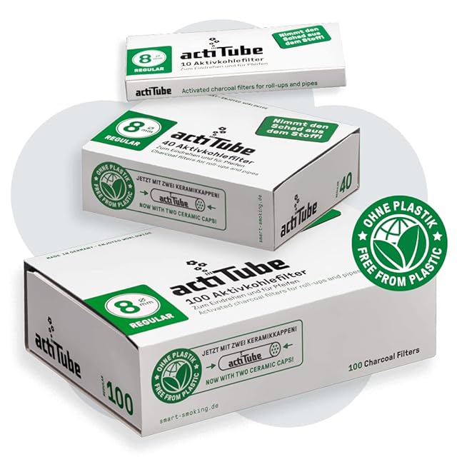 actitube(アクティチューブ)活性炭フィルター が新しいパッケージデザインになりました。 また、旧製品の黒いプラスティックキャップ(吸い口側)を廃止し、両サイドセラミックキャップになり使いやすくなりました。