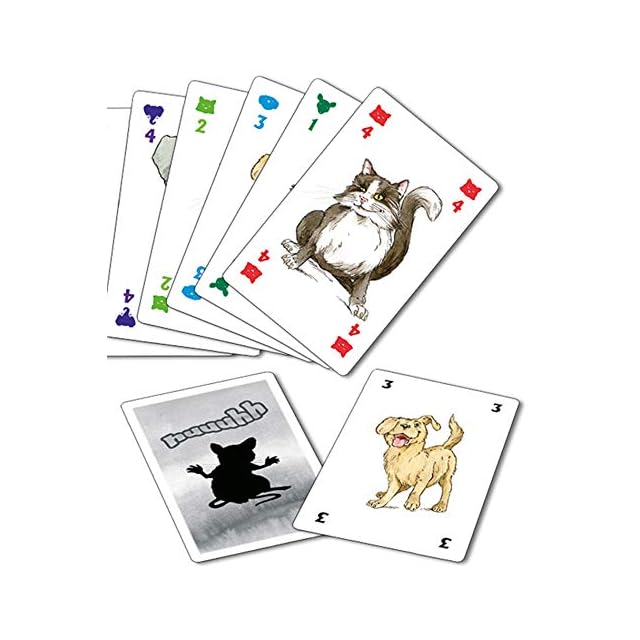 ゾウ、イヌ、ネコ、ネズミ─4種類の動物カードを出し合って勝負! 相手の動物を捕まえれば、自分の得点になります。動物カードの構成は全員同じなので、ラウンドが進むごとに読み合いが激しくなります。