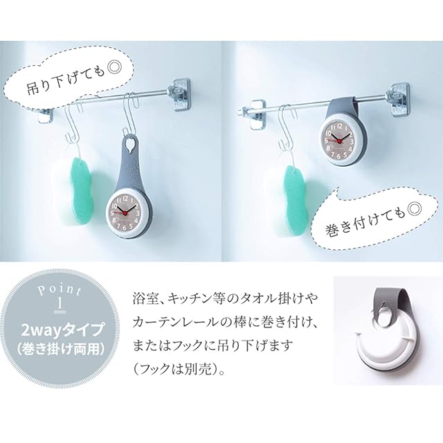 【二つの固定方法】:そのままフックに掛けても、タオル掛け等に吊り下げても、吸盤を使って鏡やガラス、タイル等に吸着してもよい時計。吸盤は滑らかな表面壁にのみ取り付けられています、例えばガラス、タイル、ミラー(鉄含有壁には、吸盤は吸着できないことを予めご了承願います)