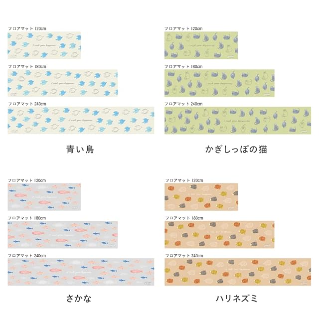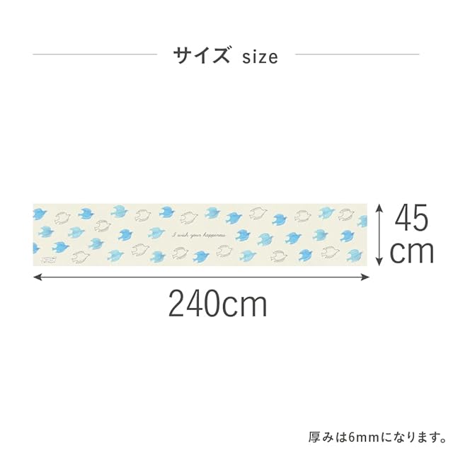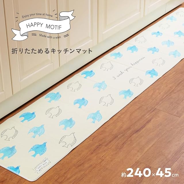 藤栄(FUJIEI) ハッピーモチーフ 折りたためる フロア マット 青い鳥 240cm 厚さ6mm HM-005 抗菌 防カビ 撥水 防炎 キッチン 廊下 拭ける クッション性 収納 コンパクト