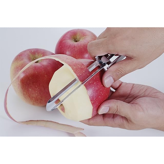 皮むきは、野菜、果物の皮むきが包丁の刃元でむくようにできる