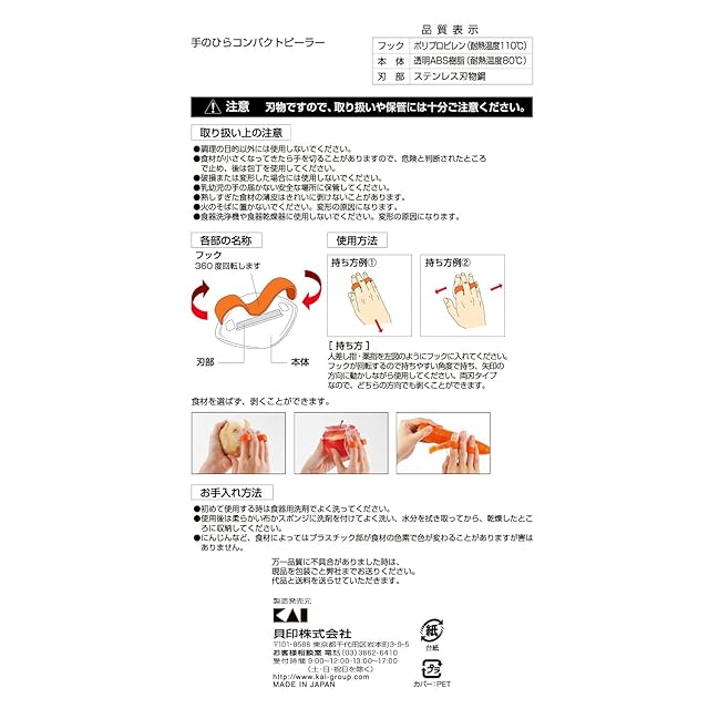 貝印 KAI 手のひらコンパクトピーラー 日本製 DH2087