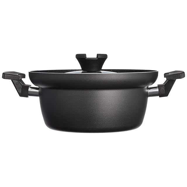 素材・材質:本体/アルミニウム合金、底部/ステンレス綱 (クロム16%)、底の厚さ2.5mm (貼り底を含む)、フタ/強化ガラス、目皿/アルミニウム合金、取っ手・つまみ/フェノール樹脂、表面加工/(内側・目皿)ふっ素樹脂塗膜加工・(外面)焼付け塗装