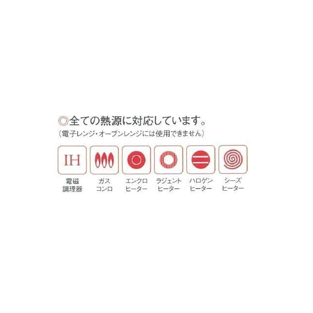 熱源:電磁調理器IH、ガスコンロ、エンクロヒーター、ラジエントヒーター、ハロゲンヒーター、シーズヒーター
