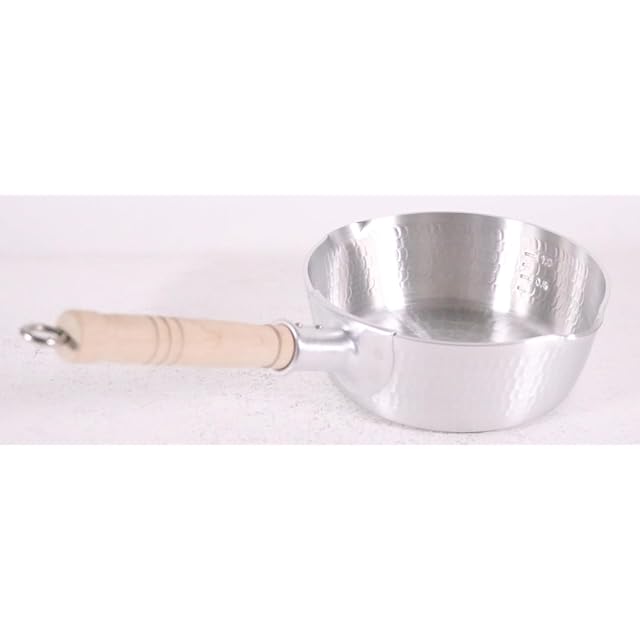 商品名:アルミ 底平 浅型打出 雪平鍋(目盛付)18cm
