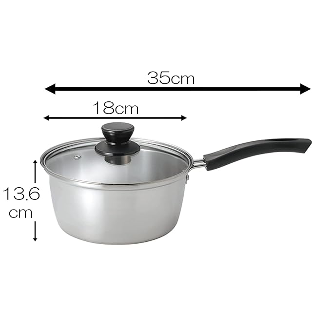 商品名:カクセー 片手鍋 18cm 満水2L サビにくい ステンレス製 ガラス蓋 軽い IH対応 ニルワーカ NW-02 シルバー
