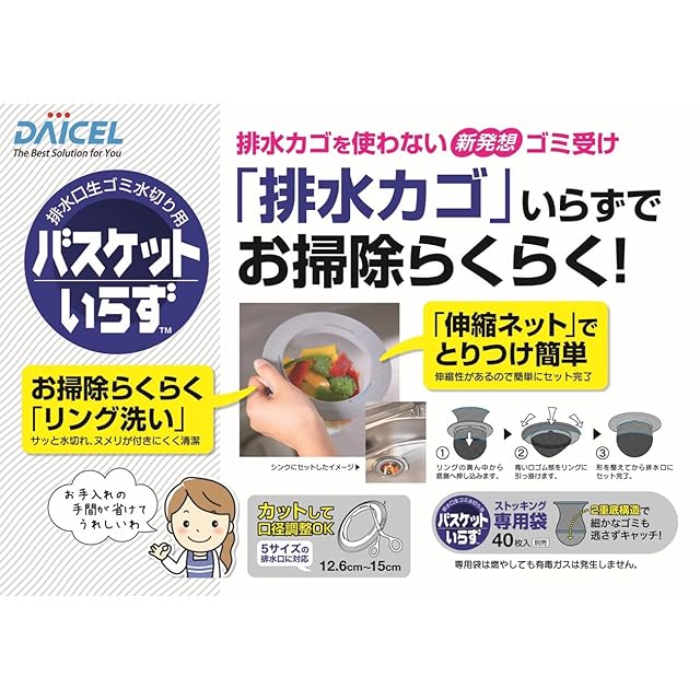 商品名:ダイセルミライズ 排水口 ゴミ受け 水切りネット バスケットいらず 本体N 排水カゴ 不要で清潔