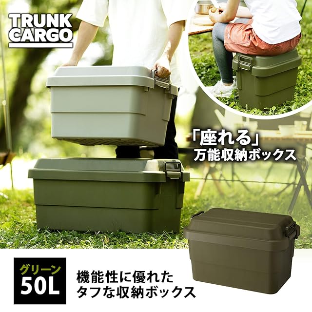 リス(RISU) 収納ボックス トランクカーゴ 50L グリーン 日本製 TC-50 コンテナ ボックス 屋外収納 キャンプ 防水 GHON071