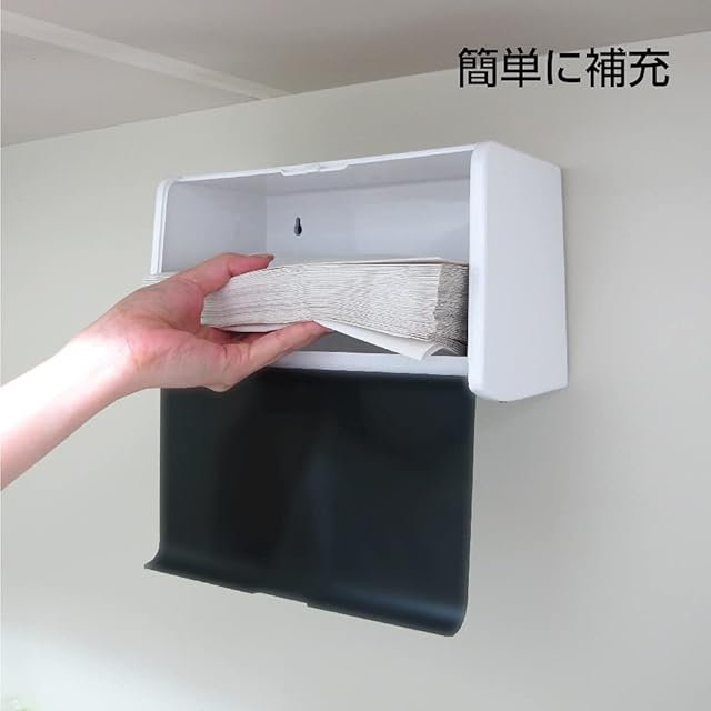 本体正面のカバーを手前に引き、ペーパータオルW49-2を約2束(400枚)収納できます。