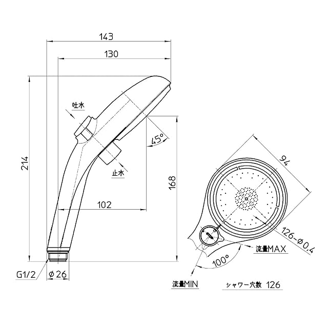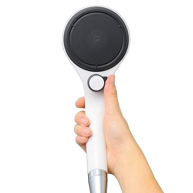【ストップ機能+勢い調整をボタンひとつで】手元のボタンを押すとシャワーをストップ。また、ボタンを回してシャワーの勢いを調整することができます。強い水圧で浴びたいお父さんとやさしい水圧で浴びたいお子様など家族それぞれで使い分けるのはもちろん、しっかり爽快に洗い流したい頭皮はパワフルに、顔まわりの繊細な肌には優しい水流を、と細やかなコントロールで、快適なシャワータイムをお過ごしいただけます。