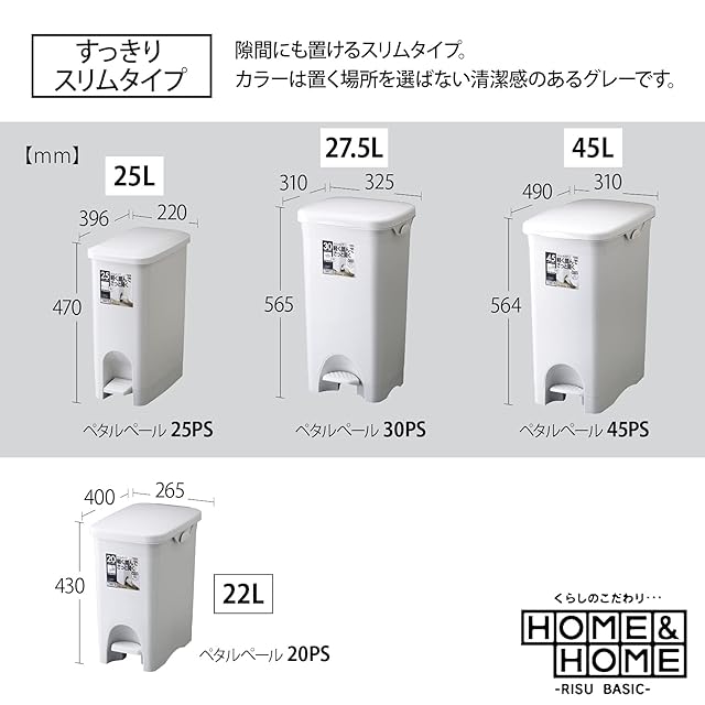 商品名:リス ゴミ箱 ペダルペール ポリ袋フック付 グレー 20L H&H 20PS