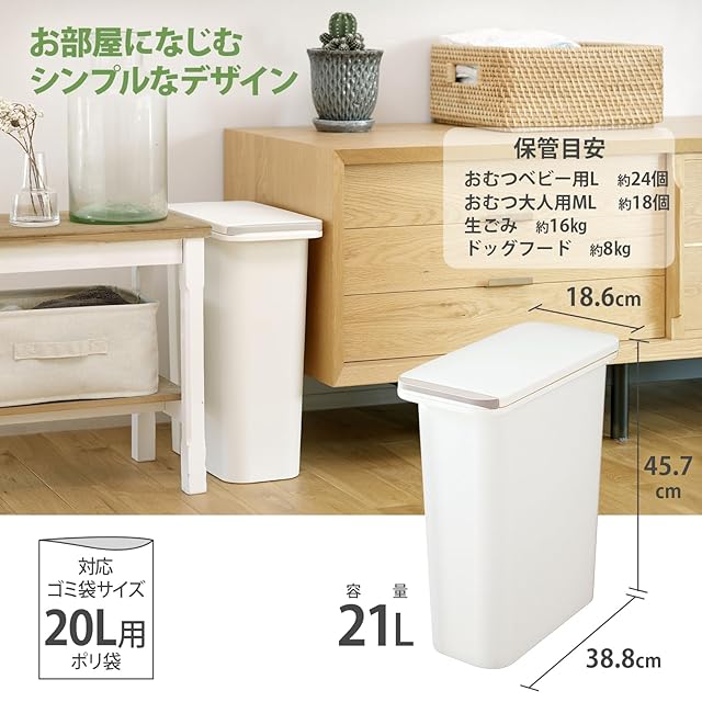 商品名:リス ゴミ箱 中フタ付き 開けても防臭ペール 20SN ホワイト 21L H&H 日本製