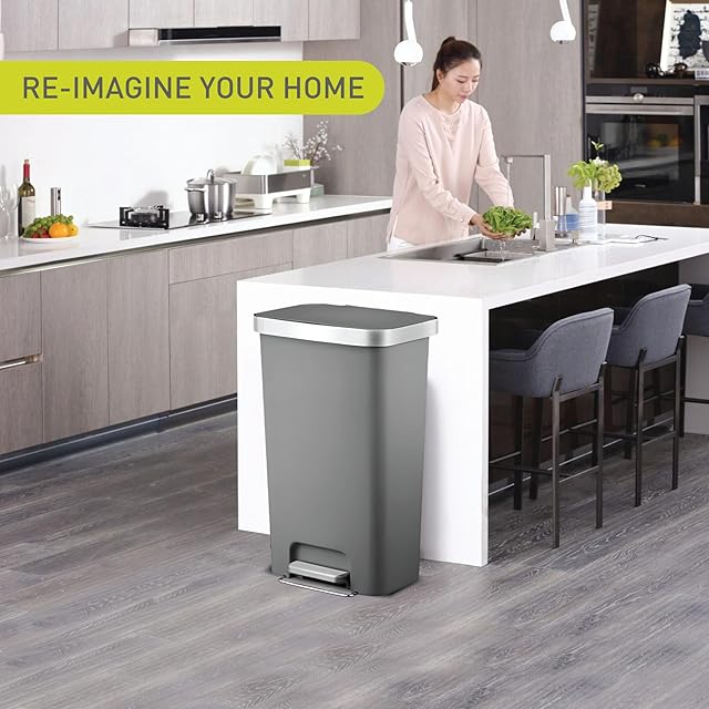 商品名:EKO ゴミ箱 ペダル式 ハナ ステップビン グレー 45L ふた付き インナーボックス無し EK6266-45L-GR