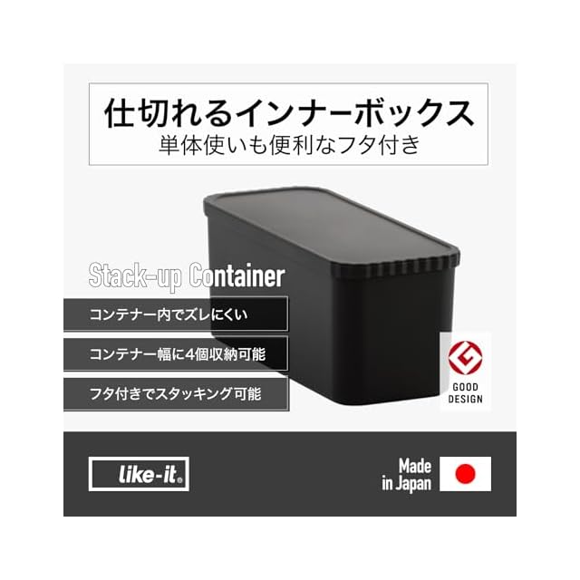 商品名:ライクイット (like-it) 単体でも使えるインナーボックス 収納ボックス 小物収納ケース 6L 収納ケース クローゼット収納 押し入れ収納 ストック収納 防災収納ケース 小物入れ 小物収納 おもちゃ収納 積み重ね フタ付き 幅36.2x奥14.8x高15.2cm ブラック 日本製 STC-03
