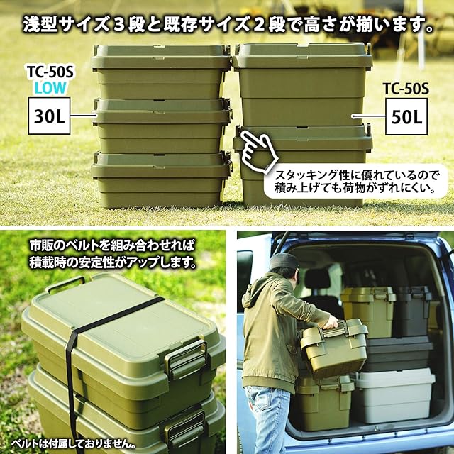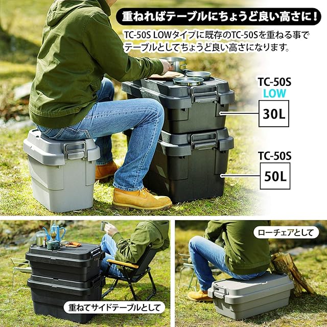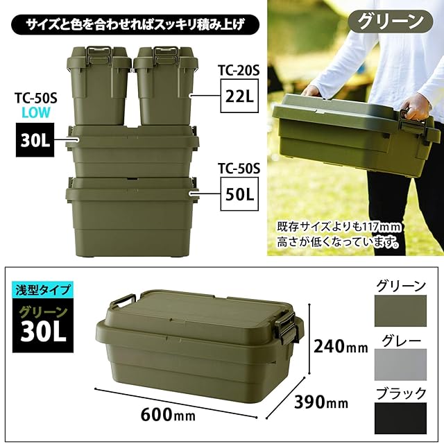 リス(RISU) 収納ボックス トランクカーゴ 30L グリーン 日本製 TC-50S LOW コンテナ ボックス スタッキングロータイプ屋外収納 キャンプ 防水 GHON133