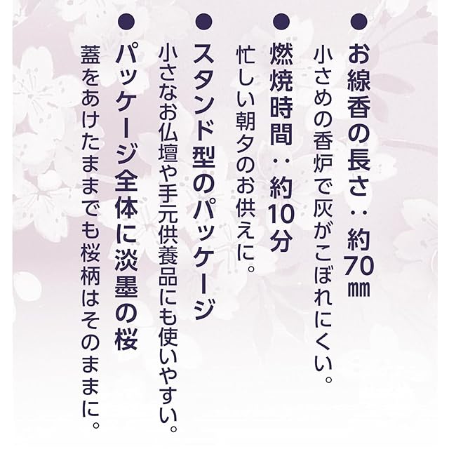 商品名:宇野千代のお線香 淡墨の桜 ミニ 約75g 線香 日本香堂 日本製 桜の香り 煙少なめ
