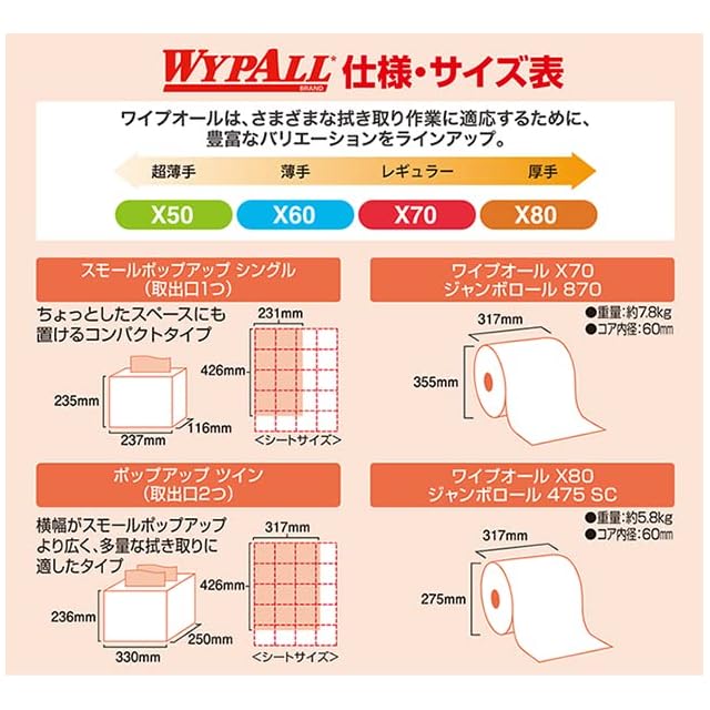 商品名:【厚手・高吸収】クレシア ワイプオール X70 スモールポップアップ 100枚 60227|携帯BOX入り 厚手不織布クロス 清掃・DIY用