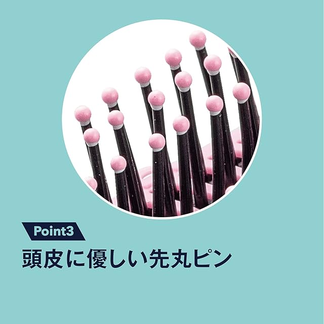 【先丸ピンで頭皮にやさしい】ブラシの先端が丸くなっているため頭皮にやさしい設計となっております。