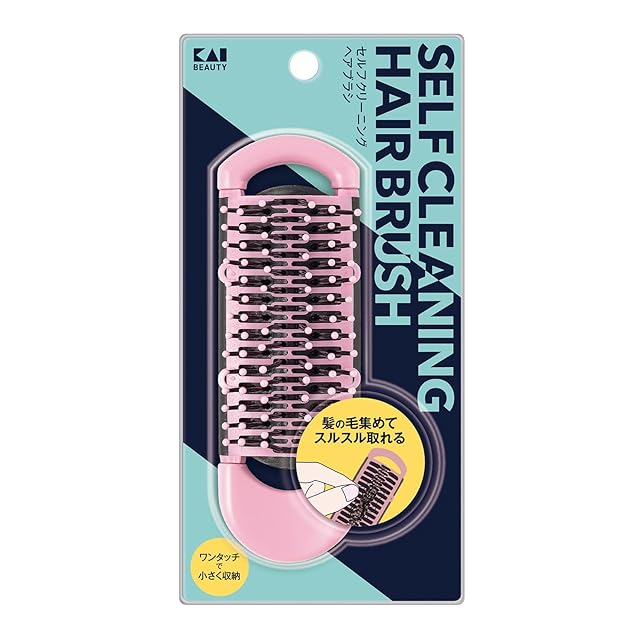 貝印 KAI ヘアブラシ セルフクリーニングブラシ コンパクト 携帯用 折りたたみ KQ3174