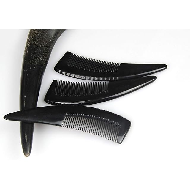 ivymaker ヘアコーム 櫛 天然素材 水牛の角 静電気対策 コーム レディース 兼用 くし 細目 髪 牛角櫛 ブッラク 16~18cm