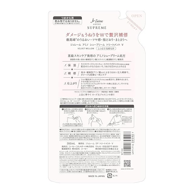 KOSE コーセー ジュレーム アミノ シュープリーム トリートメント (ベルベットメロウ) しっとり なめらか つめかえ 350mL ローズ&ジャスミンの香り 詰替え用
