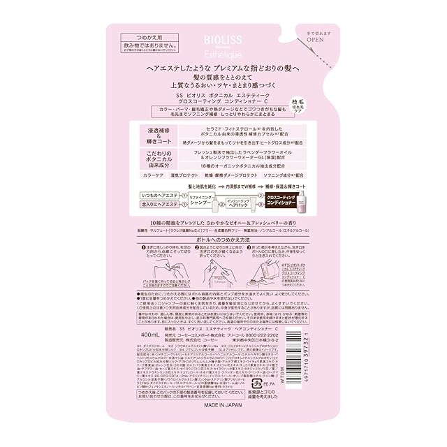 商品名:SALON STYLE(サロンスタイル) KOSE ビオリス ボタニカル エステティーク グロスコーティングコンディショナー (ダメージリペア) つめかえ 400mL 傷んでゴワつく髪をしっとりやわらかな髪へ トリートメント ローズ&ミュゲの香り 詰替え用 400ミリリットル (x 1)