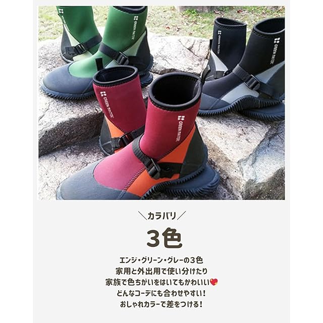 材質:本体/合成ゴム・ナイロン・ポリエステル・ポリウレタン、靴底・補強/天然ゴム、バンド/面ファスナー(ナイロン)・プラスチック