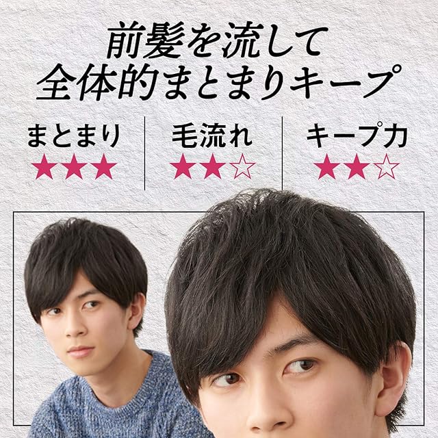 ・前髪を流してまとめた 重めでスマートなフォルムをキープするセラム。