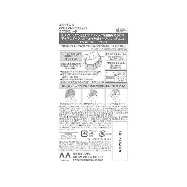 商品名:LUCIDO-L(ルシードエル) #マルチアレンジスティック エクストラハード あほ毛直し 前髪キープ まとめ髪用ヘアスティック ヘアワックス スタイリッシュグリーンの香り 13グラム (x 1)