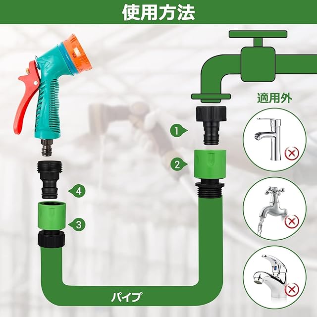 【多用途】標準 3/4 インチホース継手の接続蛇口、ノズル、スプリンクラーなどの 3/4 インチ散水機器に適合します。