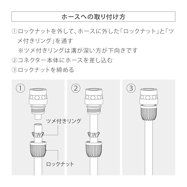金属の頑丈なノズルでありながら、ラバーグリップで手にフィットする使い心地にもこだわったタフギアメタルノズル。レバーを握ると連動してストッパーがロックされ、通水中の手への負担を軽減。普通ホース(内径12-15mm/外径21mm)に対応。