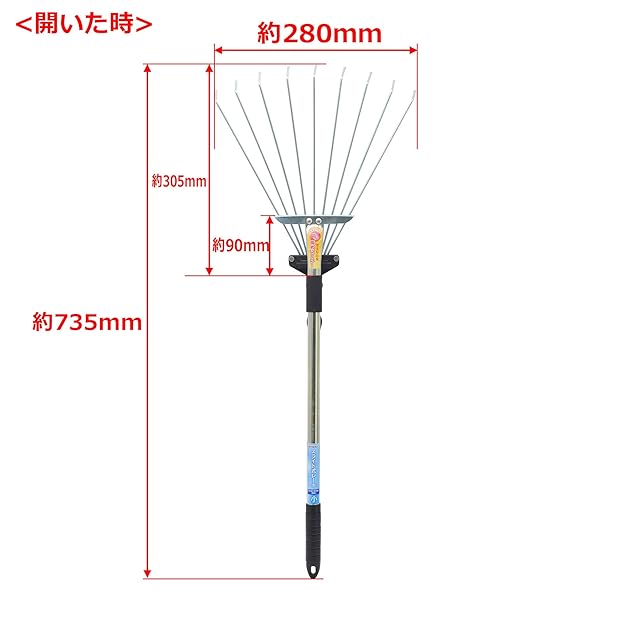 商品名:高儀(Takagi) スライド式レーキ 落ち葉・草刈後の清掃に 伸縮全長:約55~73cm 幅約12~28cm 小