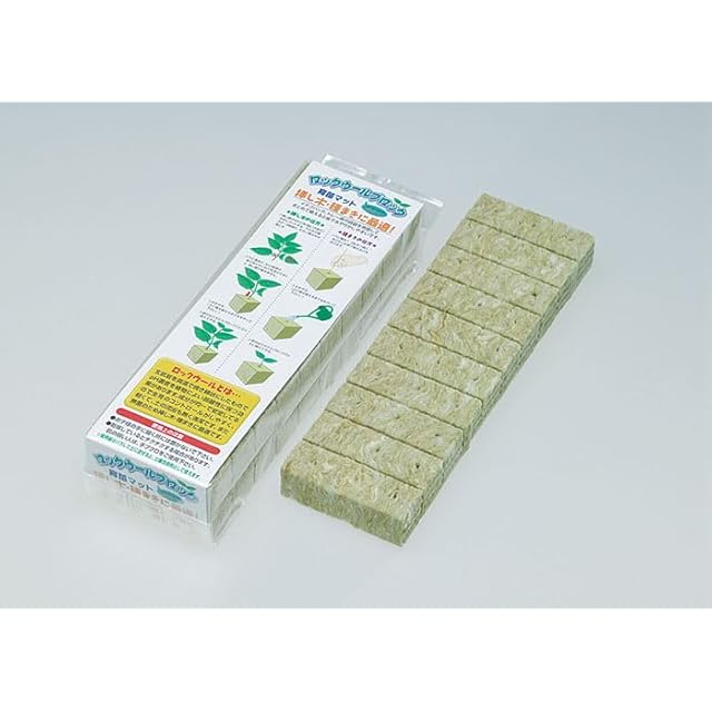 通気性・保水性に優れ、挿し木・種まきに適した育苗ブロックです。ロックウールとは高炉スラグと岩石を高温で焼いて線状にしたもので、pH濃度を植物に良い弱酸性に保つ効果があります。成分が均一で安定しているので生育のコントロールがしやすく、軽くて、土の流出もなく清潔です。また、無菌のため挿し木・種まきに適しています。イチゴパック・トレー等の容器を用意してまとめて植えると後で水やりがしやすいです。