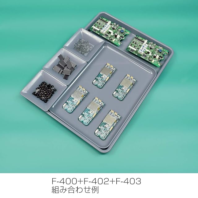 用途に応じて組み合わせて使えるノンカーボンの静電気対策トレー。数種類を組み合わせた使用も可能です。
